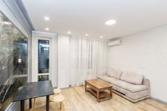 Интерьер квартиры разработан профессиональным дизайнером с использованием стильных и современных отделочных материалов. Каждая деталь внимательно продумана, чтобы создать уютную и современную обстановку.