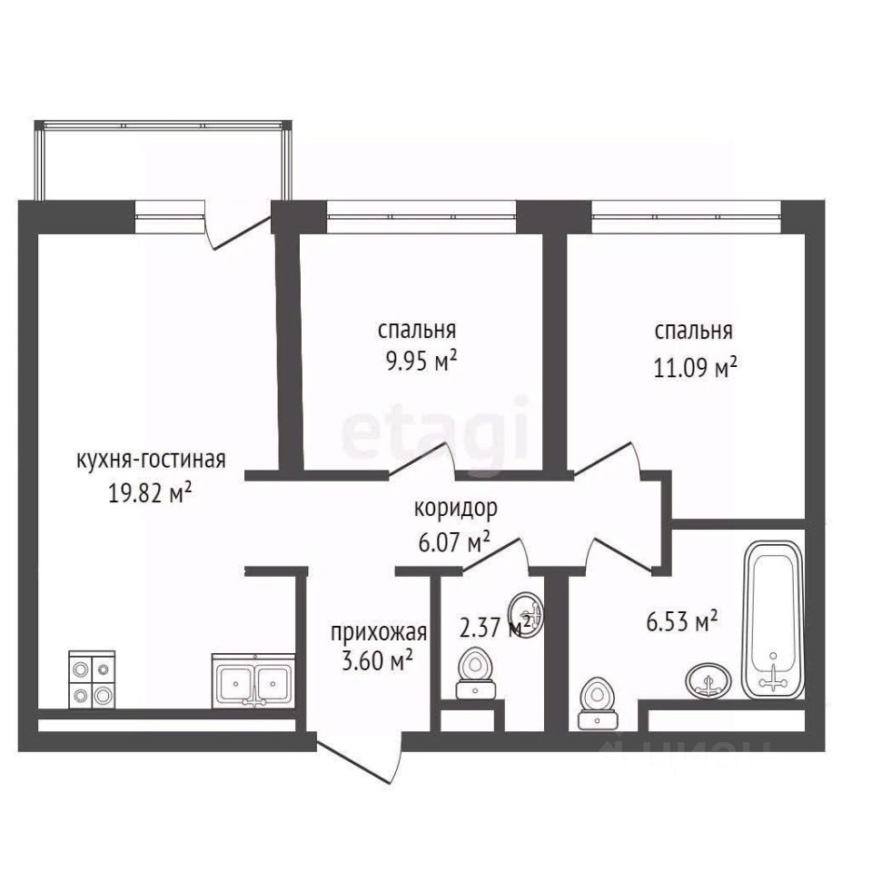 Планировка квартиры — это настоящее воплощение комфорта и функциональности. Просторная кухня-гостиная-столовая площадью почти 20 кв.м. с выходом на остекленную лоджию станет идеальным местом для семейных ужинов и встреч с друзьями. Две уютные спальни и два санузла обеспечат вам максимальное удобство и приватность. Квартира предлагается с предчистовой отделкой: стены выровнены и оштукатурены, на полу — качественная цементно-песчаная стяжка с минеральным утеплителем, что гарантирует отличную шумоизоляцию.