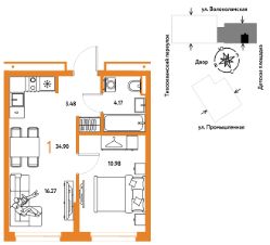 Продается 1комнатная квартира на 9 этаже от застройщика Страна Девелопмент. Площадь квартиры 34,9 кв. м.