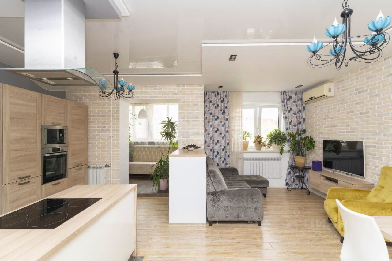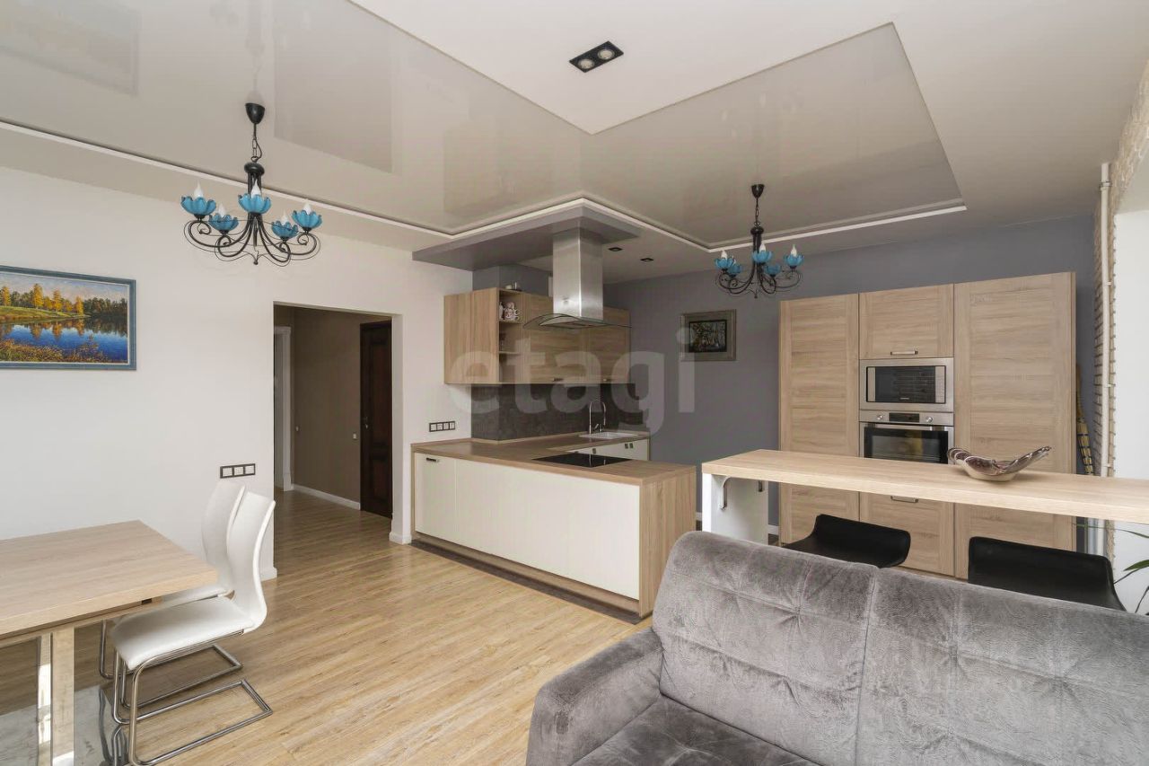 Выполнен современный ремонт. В кухне-гостиной, коридорах, ванной, с/у, на балконе и лоджии установлены теплые полы.