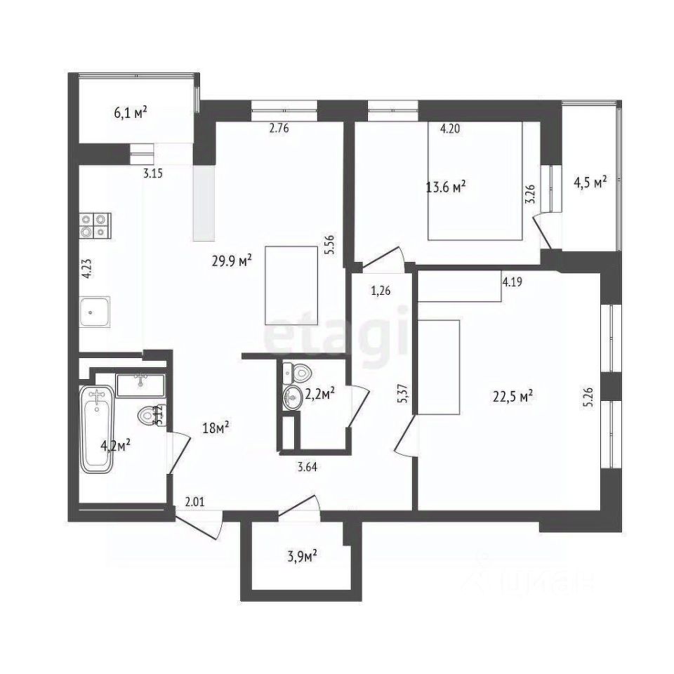 Отличный вариант для большой и дружной семьи: большая кухня-гостиная, 2 изолированных комнаты, 2 с/у, балкон и лоджия. Идеальная продуманная планировка.