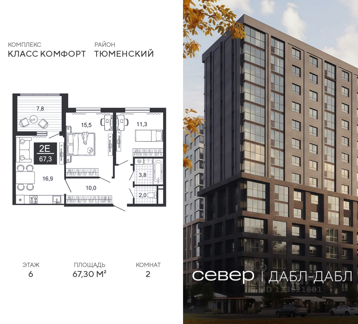 Продаётся квартира площадью 67.30 м2 в жилом комплексе "Дабл-Дабл". Квартира находится на 6 этаже, жилая площадь квартиры 26.80 м2, площадь просторной кухни — 16.90 м2. Среди особенностей планировки — изолированные комнаты с окнами на одну сторону, 1 совмещённый санузел.