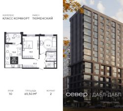 Продаётся квартира площадью 65.50 м2 в жилом комплексе "Дабл-Дабл". Квартира находится на 10 этаже, жилая площадь квартиры 26.80 м2, площадь просторной кухни — 16.90 м2. Среди особенностей планировки — изолированные комнаты с окнами на одну сторону, 1 совмещённый санузел.