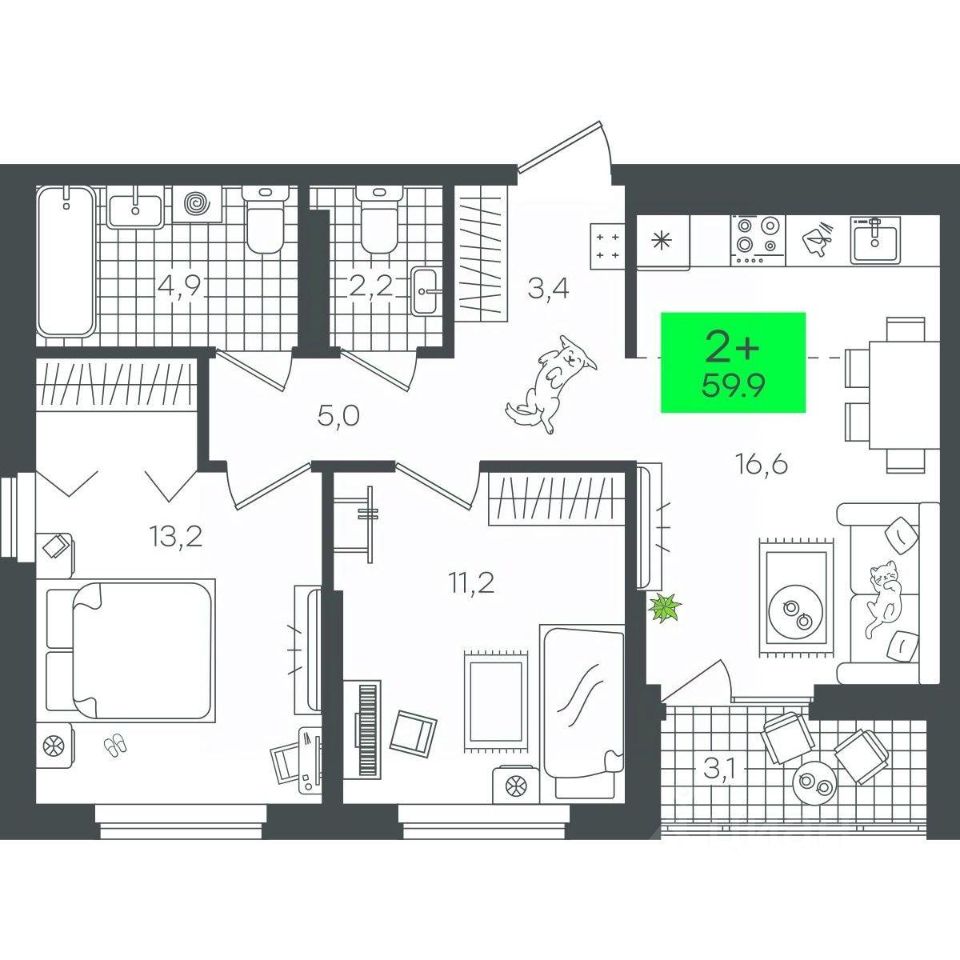 Продаётся 2-комнатная квартира в строящемся доме (1-Д5.1 (Малкова, 5)), срок сдачи: III-кв. 2026, общей площадью 59.97 кв.м., на 6 этаже. Компания 4D приступила к строительству нового жилого комплекса "Гранд квартал". Новый ЖК находится в зеленой зоне Калининского района, южнее микрорайона Тюменская слобода.