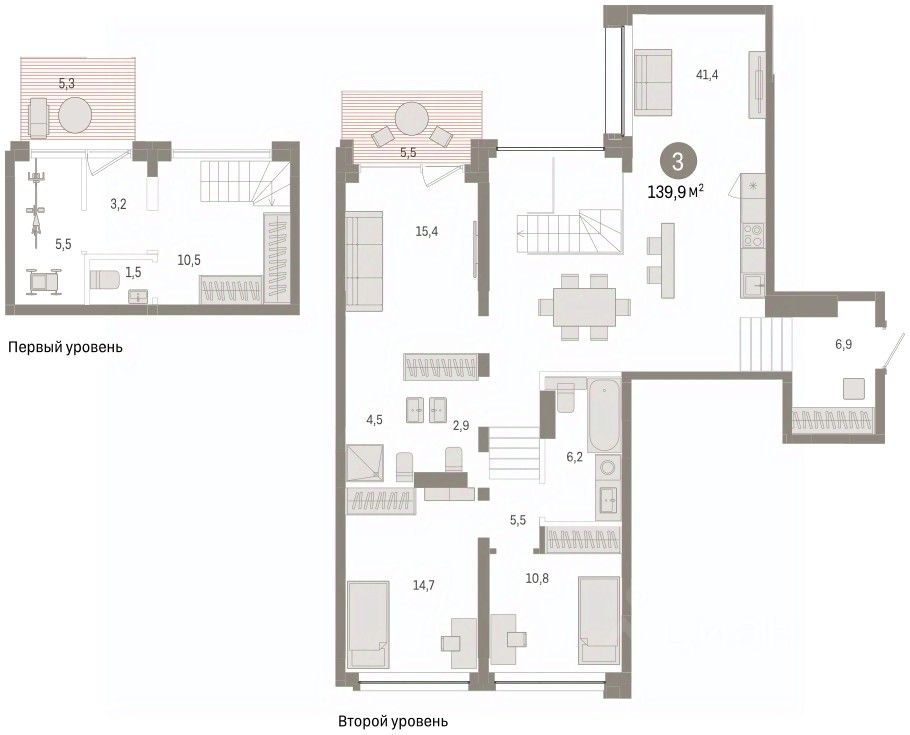 Трехкомнатная квартира от застройщика с предчистовой отделкой в ЖК "Дом у озера" на 1 этаже. Общая площадь: 139.92 кв.м. Высота потолков 2.7 м.