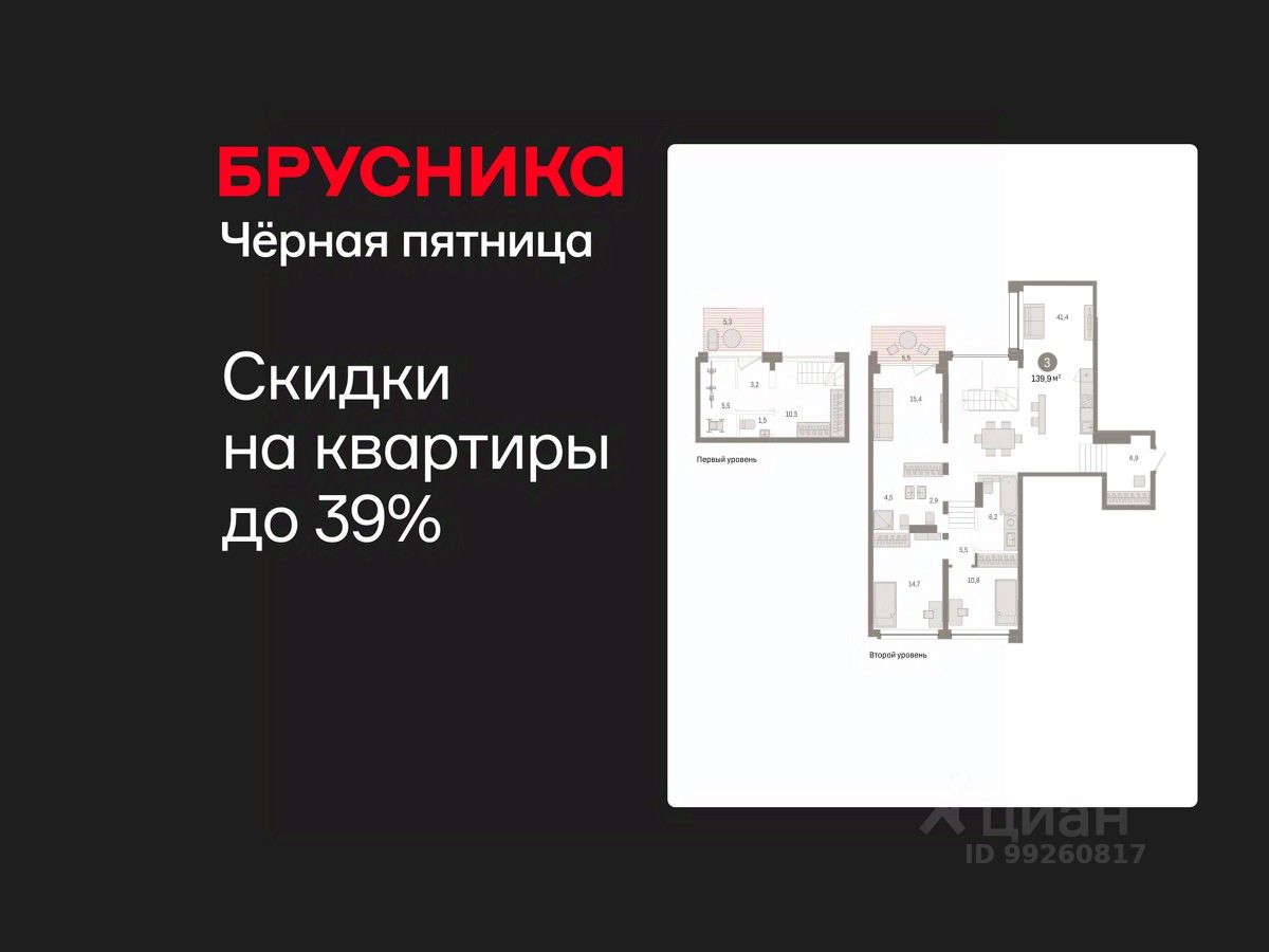 Продается 3-комн. квартира с предчистовой отделкой в ЖК "Дом у озера" на 1 этаже. Общая площадь: 139.92 кв.м. Высота потолков 2.7 м.