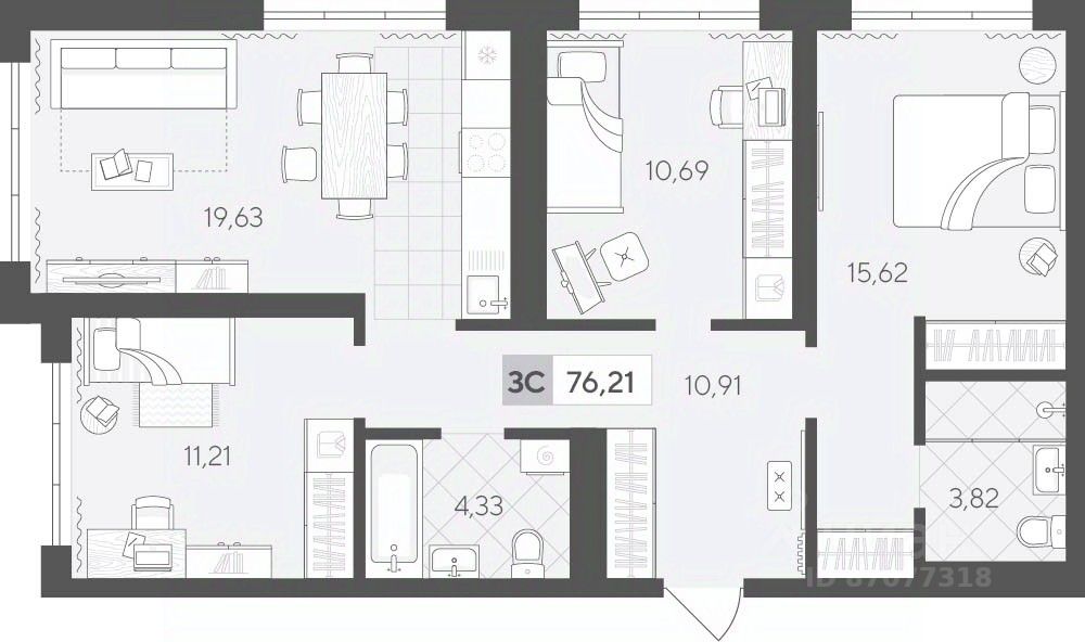 Продаётся 3-комнатная квартира в строящемся доме (ГП 2 (Сергея Корепанова, 34)), срок сдачи: IV-кв. 2027, общей площадью 76.21 кв.м., на 9 этаже. Новый жилой комплекс "Скандиа. Квартал у Леса" от Специализированного застройщика "СКАНДИА У ЛЕСА" расположен в г. Тюмень на ул. Бориса Прудаева.