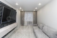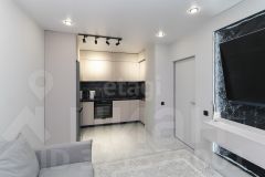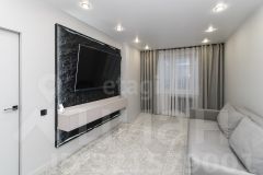 В квартире выполнен современный ремонт, на полу ламинат, потолки натяжные, стены одеты в обои под покраску. Сан узел совмещён, отделан кафельной плиткой.