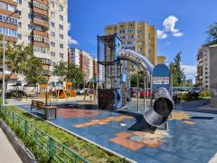Дом располагается в глубине микрорайона, что избавит Вас от шума, пыли и выхлопных газов проезжей части.