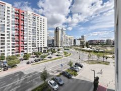 Мы выбирали эту квартиру вдумчиво для себя-любимых на стадии начала строительства на удобном 5-м этаже - "золотая середина" 10-этажного дома, с видом во двор (прекрасный двор с дизайнерским озеленением), огромные полу-витражные окна добавляют ощущение воздуха и простора. Окна квартиры выходят на юго-запад - вся квартира в течение светового дня обласкана солнечными лучами.