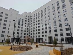 Двор: Закрытый, безопасный, с современным ландшафтным дизайном и облагороженным прудом. Есть детские площадки.