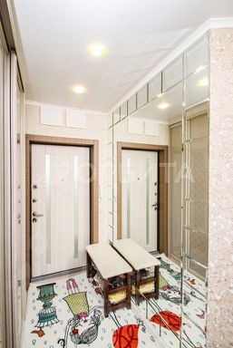 В квартире установлены стильные двери "Софья". В прихожей — вместительный красивый шкаф.