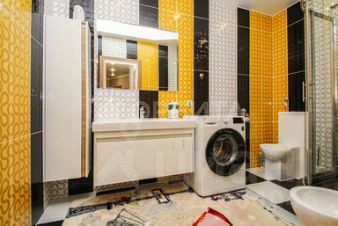 • Ванная комната с теплым полом, большой умывальник с зеркалом (100100), биде, унитаз и душевая кабина с тропическим душем. Все мебель от итальянских производителей.
