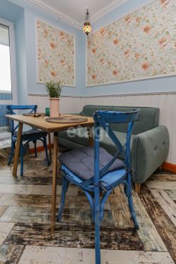 Во всей квартире, кроме ванной комнаты нет натяжных потолков, поэтому дышать в квартире Вам будет легко, отделка квартиры полностью из экологических материалов, преимущественно во всей квартире участвует дерево. Обои в интерьере привезены из Англии, таких вы не найдёте здесь, такие есть только в нашей квартире и у парочки семей в Англии. В квартире очень много мест для хранения, так как продумано абсолютно всё до мелочей, здесь Вам не придётся увозить шубу на лето на дачу, здесь предостаточно места.
