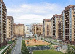 - Инфраструктура во дворе и рядом: большая детская площадка с футбольным полем, теннисным кортом; зимний каток (летом волейбол); фитнесклуб с бассейном; детский сад, школа, развивающие занятия; городская поликлиника и аптеки.