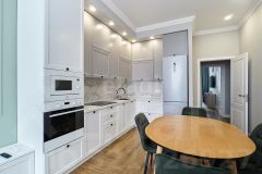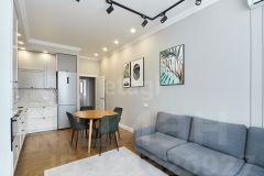 В квартире выполнен современный ремонт в светлых, приятных тонах с использованием высококачественных материалов.