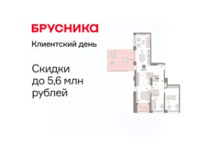 Квартира с кухней-гостиной и тремя спальнями в Доме у озера. Особенности планировки: предчистовая отделка.