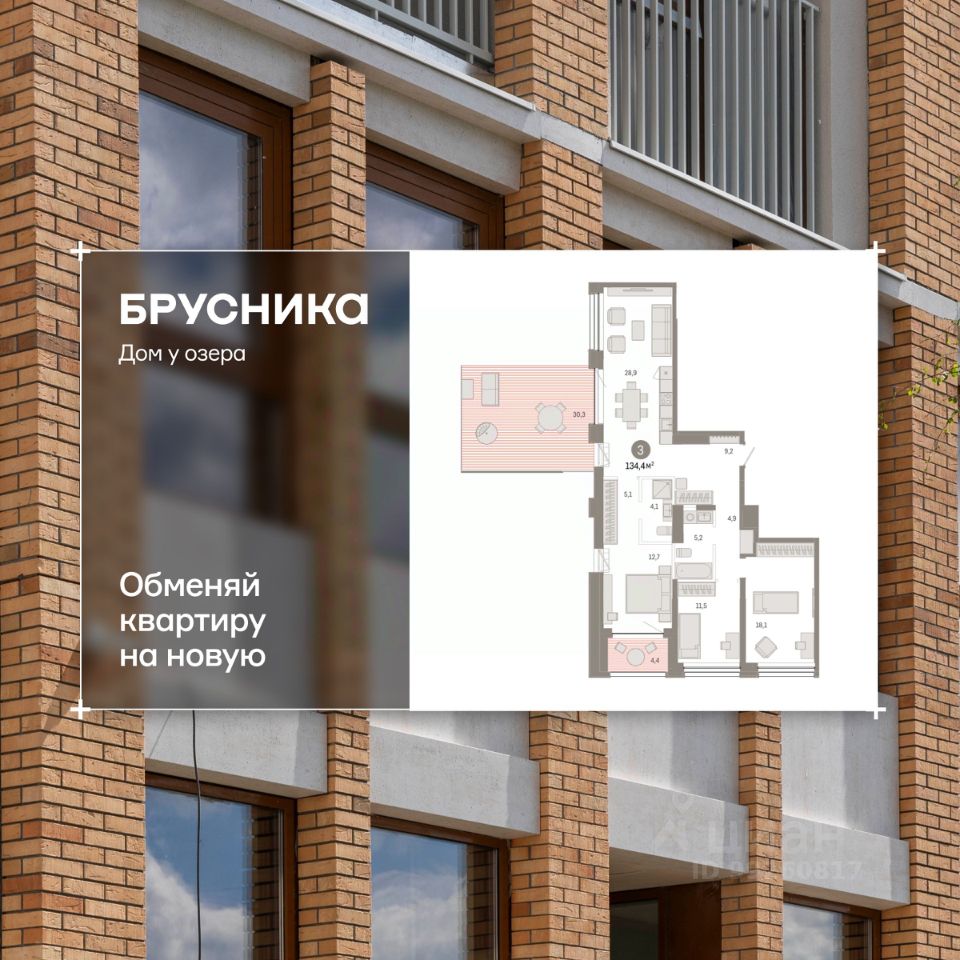 Трехкомнатная квартира с предчистовой отделкой в ЖК "Дом у озера" на 5 этаже. Общая площадь: 134.4 кв.м. Высота потолков 2.7 м.