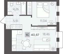 Уютная однокомнатная квартира 39.27 кв.м на 12 этаже. Функциональная планировка позволяет удобно организовать быт, а кухня-гостиная подойдёт для отдыха и общения.