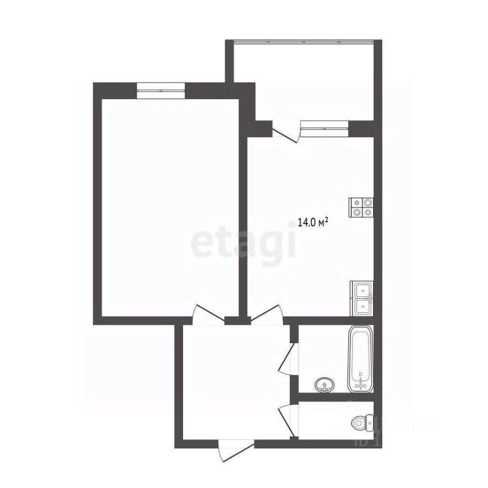 Простор и свет: Планировка создаёт ощущение простора. Большая светлая комната с окнами на спокойную сторону и просторная кухня, где легко поместится обеденный стол для друзей.