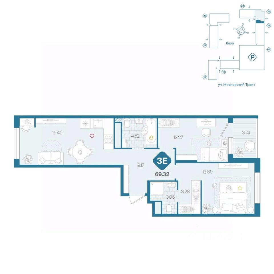 Общая площадь69,32 м²