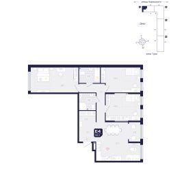 Просторная кухня-гостиная создает атмосферу открытости и уюта, с выделенной зоной лоджии, которая может использоваться как место для отдыха или наслаждения свежим воздухом. Это пространство идеально подходит для семейных вечеров и встреч с друзьями