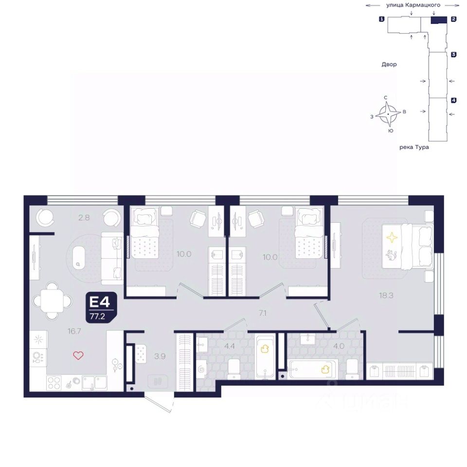Просторная четырехкомнатная квартира отличается продуманной планировкой и элегантным дизайном, что создаёт идеальные условия для комфортного проживания. Окна выходят на две стороны, что наполняет пространство естественным светом и создает приятную атмосферу для жизни.