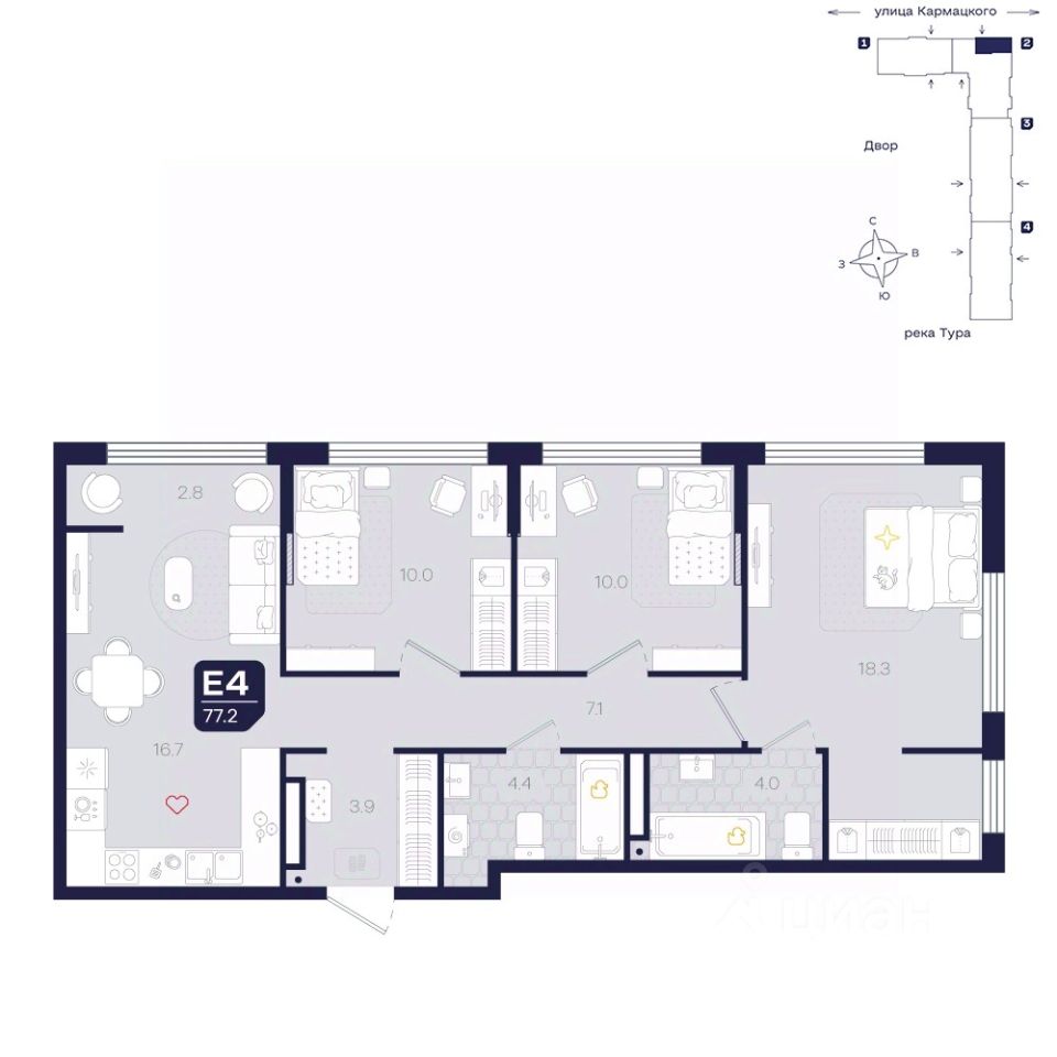 Просторная евро-четырехкомнатная квартира отличается продуманной планировкой и элегантным дизайном, что создаёт идеальные условия для комфортного проживания. Окна выходят на две стороны, что наполняет пространство естественным светом и создает приятную атмосферу для жизни.