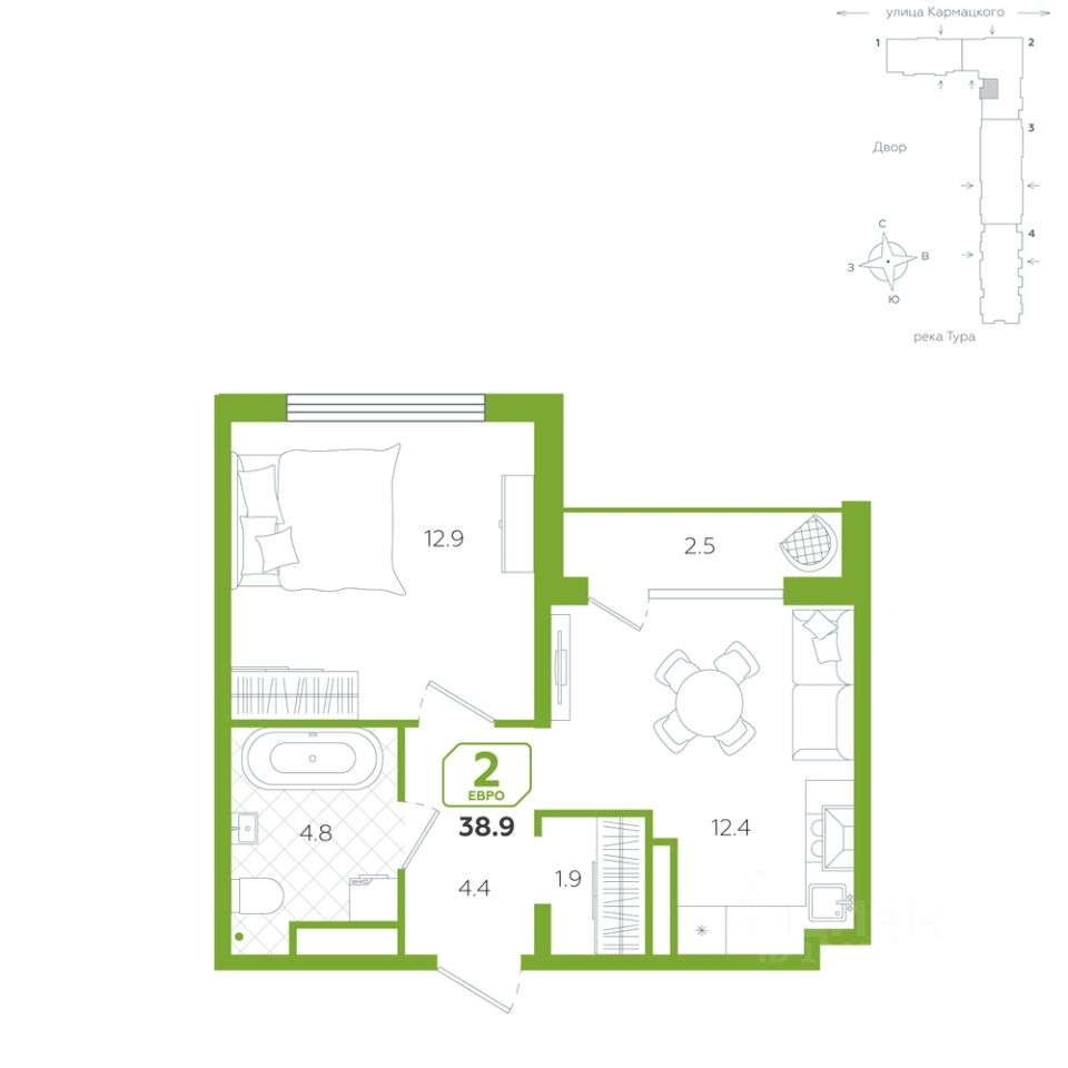 Элегантная двухкомнатная квартира создает идеальные условия для жизни и отдыха.