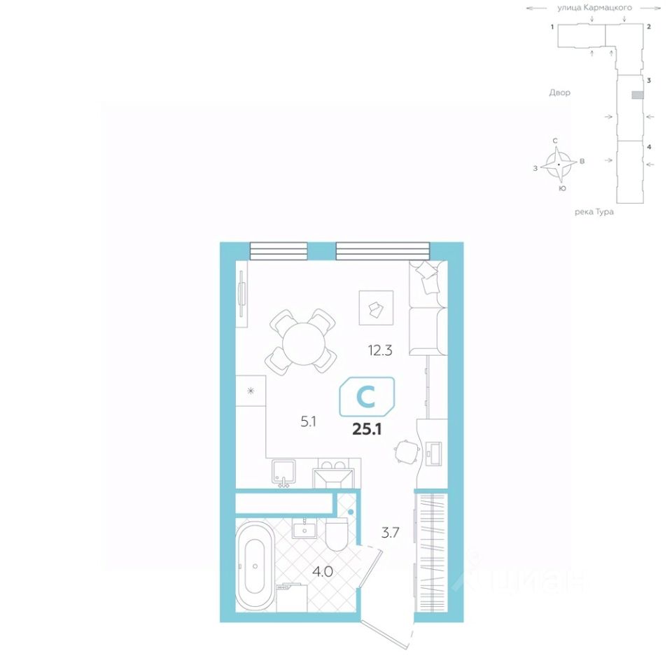 Уютная студия обладает правильной геометрией, что позволяет максимально эффективно использовать пространство.