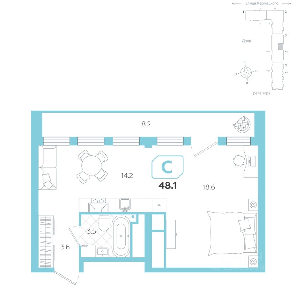 Уютная студия обладает правильной геометрией, что позволяет максимально эффективно использовать пространство.