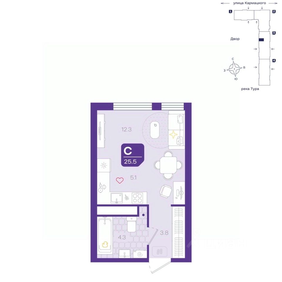 Уютная студия обладает правильной геометрией, что позволяет максимально эффективно использовать пространство.
