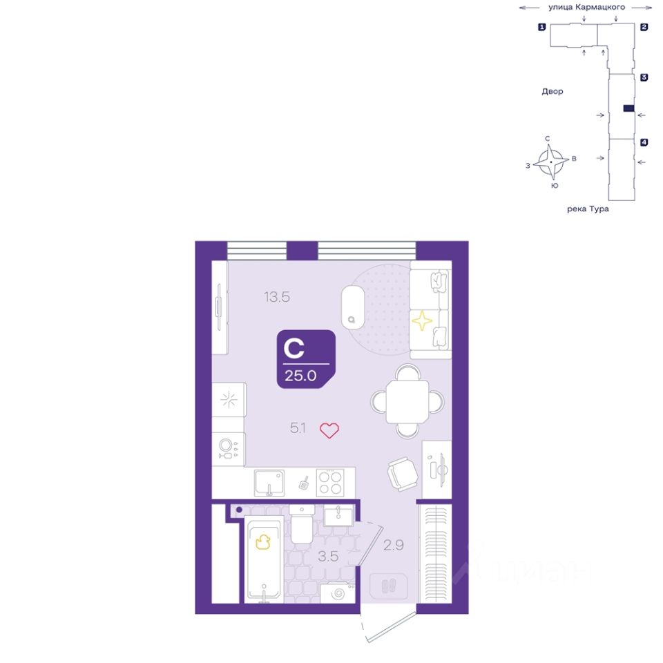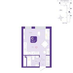 Уютная студия обладает правильной геометрией, что позволяет максимально эффективно использовать пространство.