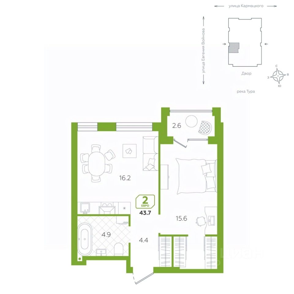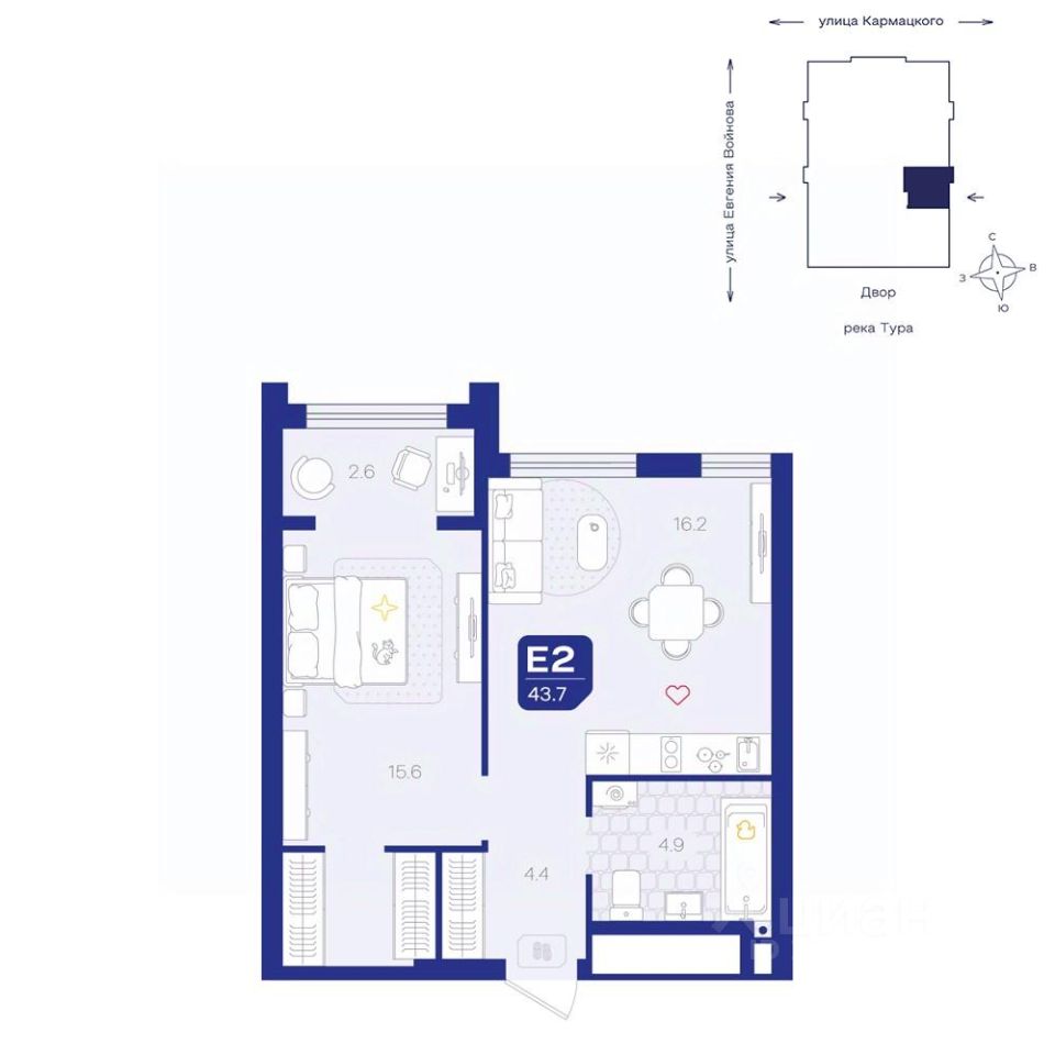 Элегантная двухкомнатная квартира создает идеальные условия для жизни и отдыха.