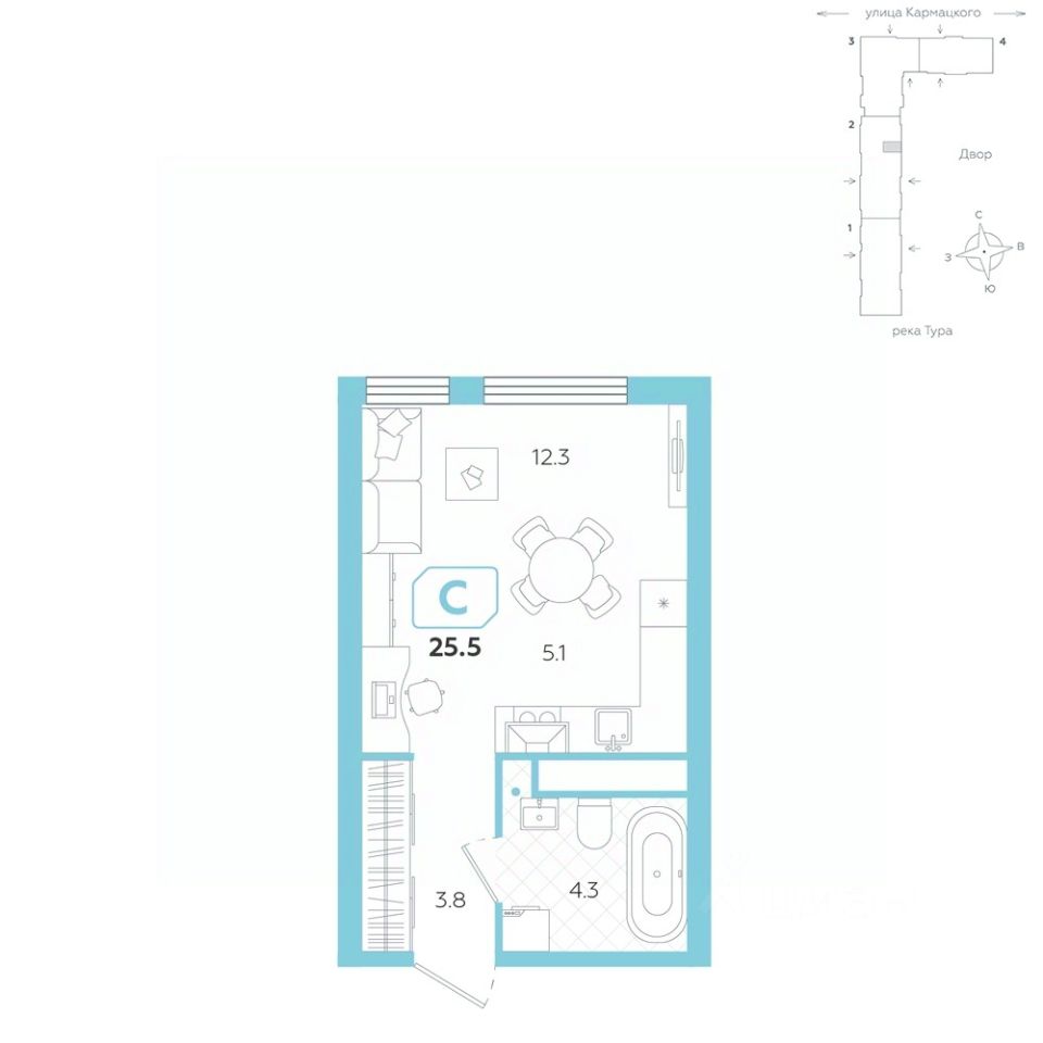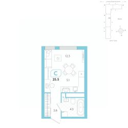 Уютная студия обладает правильной геометрией, что позволяет максимально эффективно использовать пространство.