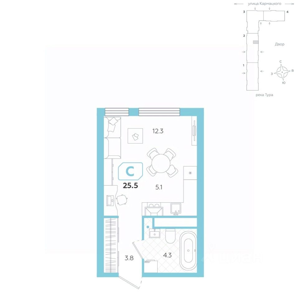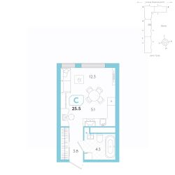 Уютная студия обладает правильной геометрией, что позволяет максимально эффективно использовать пространство.