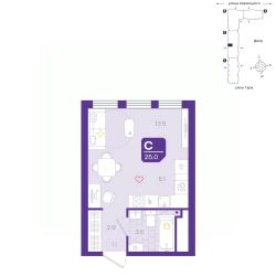 Уютная студия обладает правильной геометрией, что позволяет максимально эффективно использовать пространство.