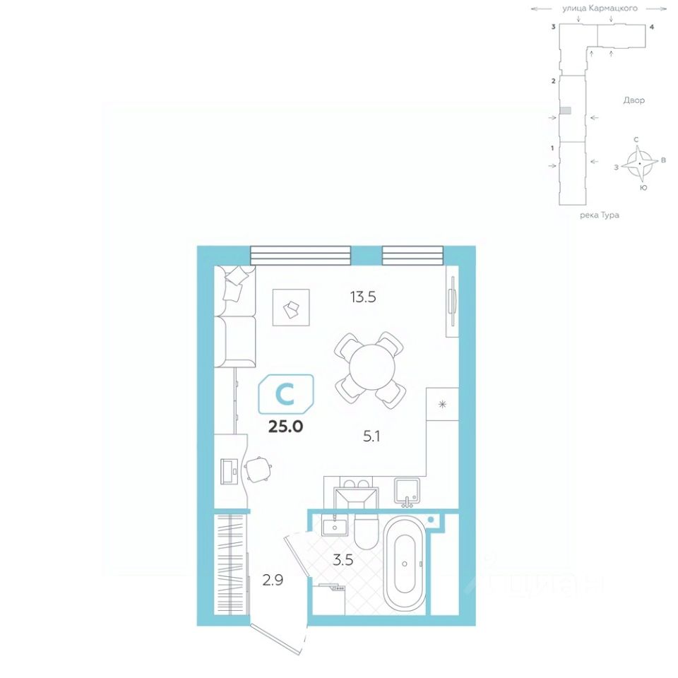 Общая площадь25 м²
