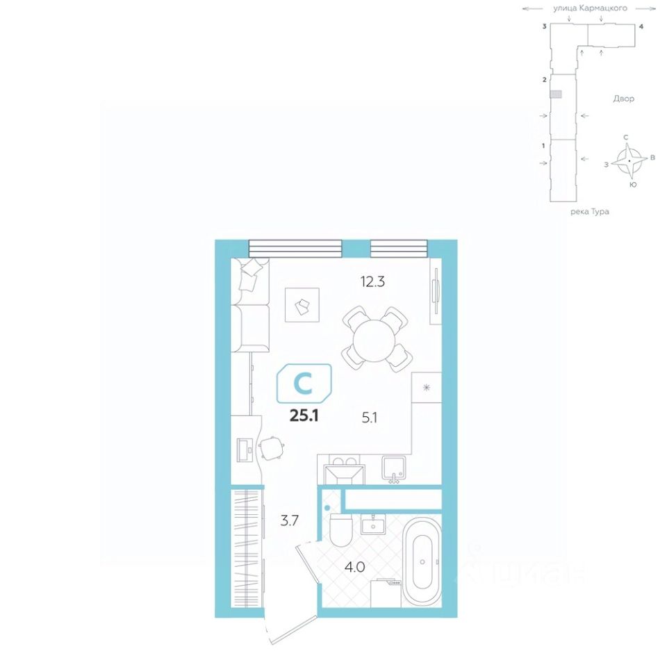 Уютная студия обладает правильной геометрией, что позволяет максимально эффективно использовать пространство.