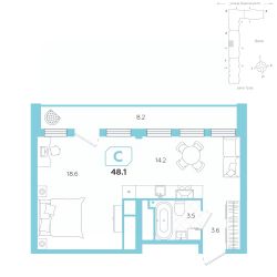 Уютная студия обладает правильной геометрией, что позволяет максимально эффективно использовать пространство.
