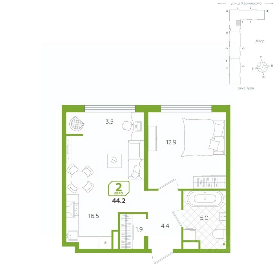 Общая площадь44,2 м²