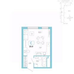 Уютная студия обладает правильной геометрией, что позволяет максимально эффективно использовать пространство.