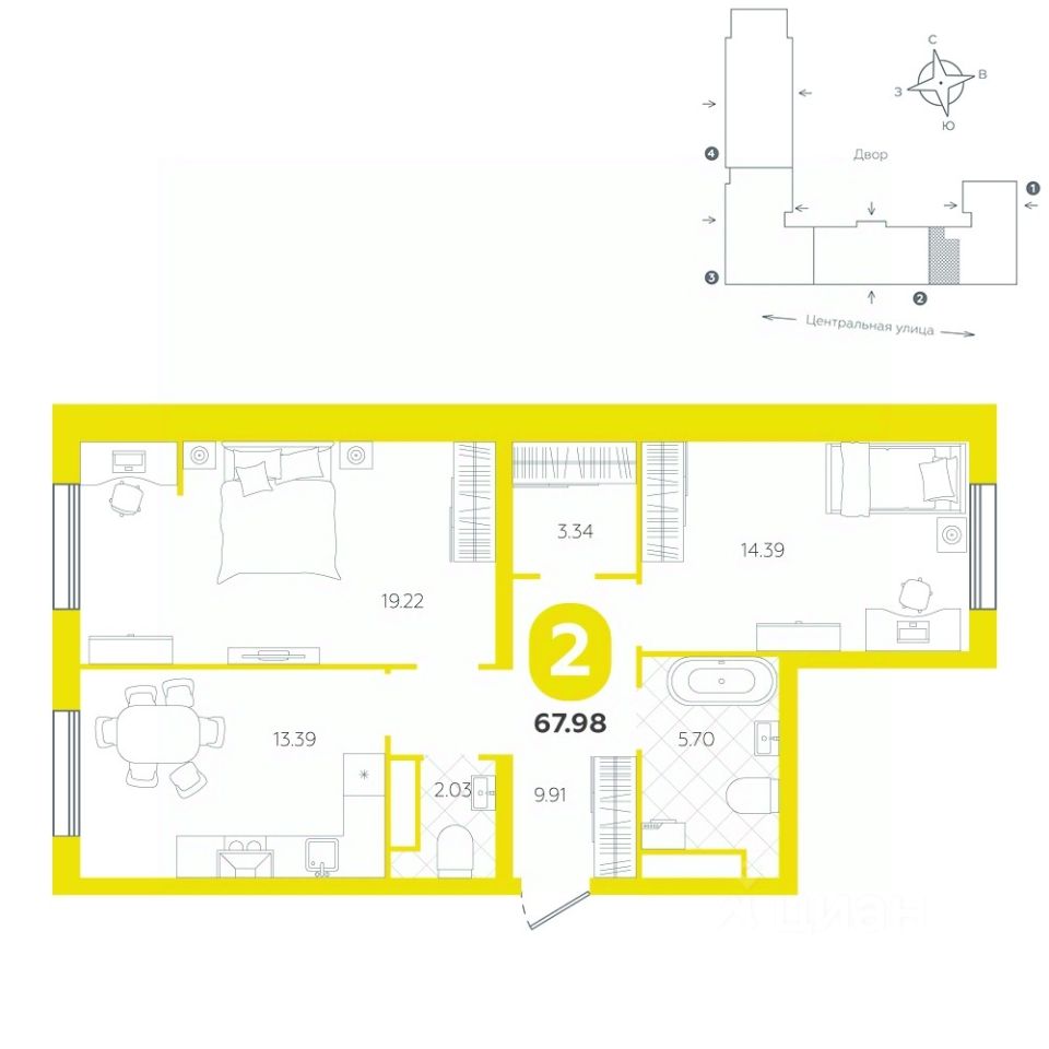Квартира оснащена двумя санузлами, что существенно упрощает повседневные дела и совместное проживание.