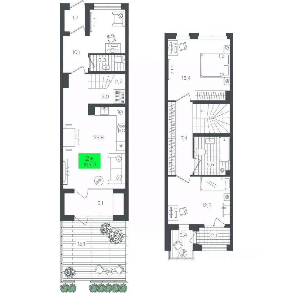 Продаётся 2-комнатная квартира в строящемся доме (В5.2 (Малкова, 19)), срок сдачи: III-кв. 2026, общей площадью 109.07 кв.м., на 1 этаже. Компания 4D приступила к строительству нового жилого комплекса "Гранд квартал". Новый ЖК находится в зеленой зоне Калининского района, южнее микрорайона Тюменская слобода.