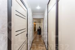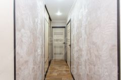 Полы в квартире покрыты линолеумом, что делает уборку легкой и быстрой. В ванной комнате установлен бойлер, а в коридоре останется встроенный шкаф, который поможет вам организовать пространство.