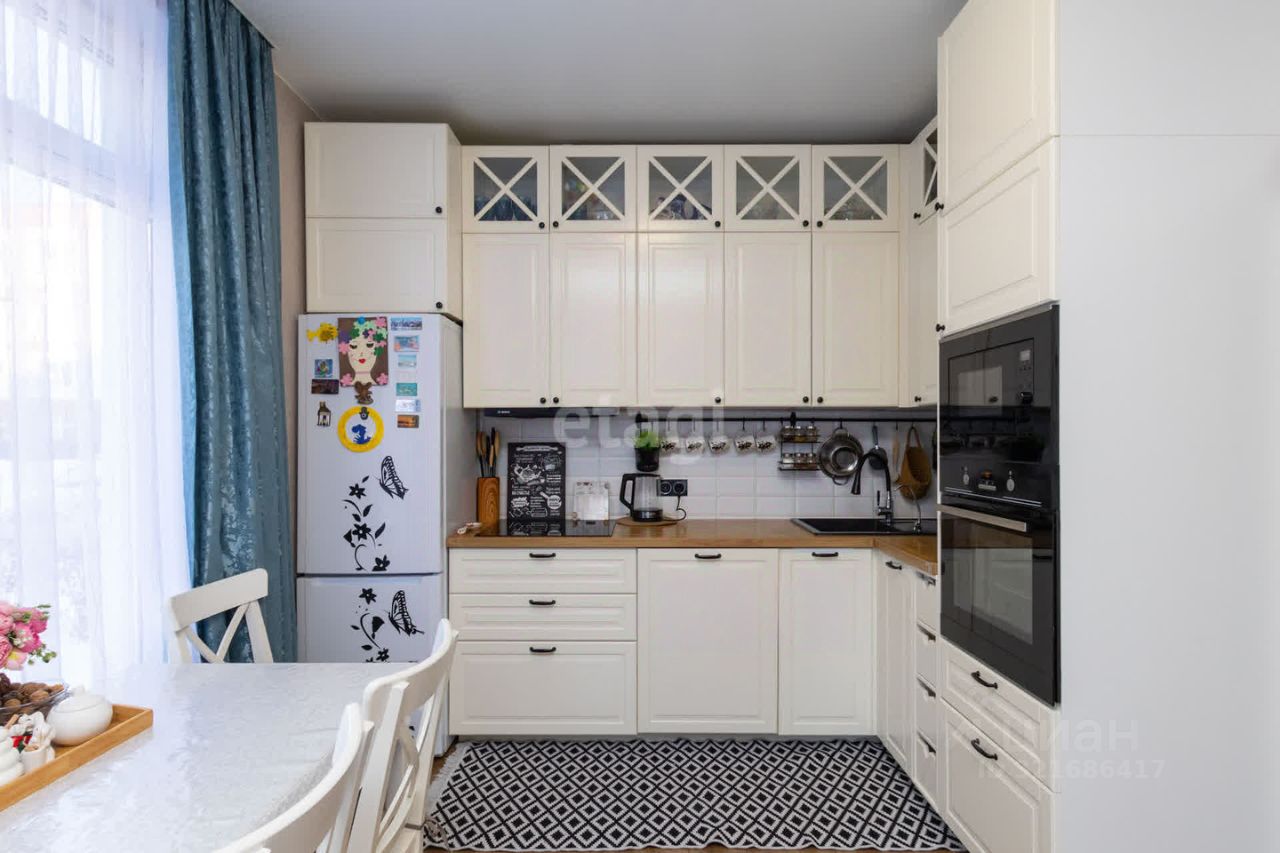 При продаже остается кухонный гарнитур со встроенной бытовой техникой, мебель в ванной комнате, прихожая, встроенные полки в гардеробной комнате и кладовой.