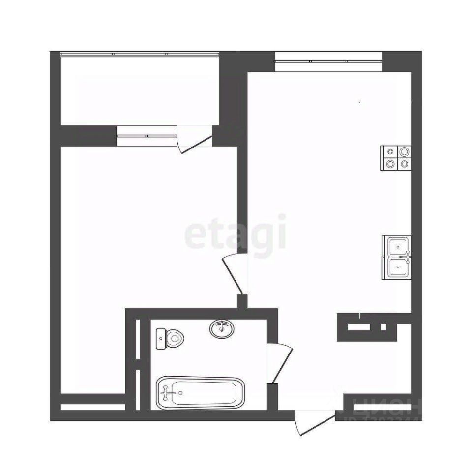 Общая площадь квартиры с балконом 45 кв.м. Комфортная площадь кухни-гостиной - 17 м2.