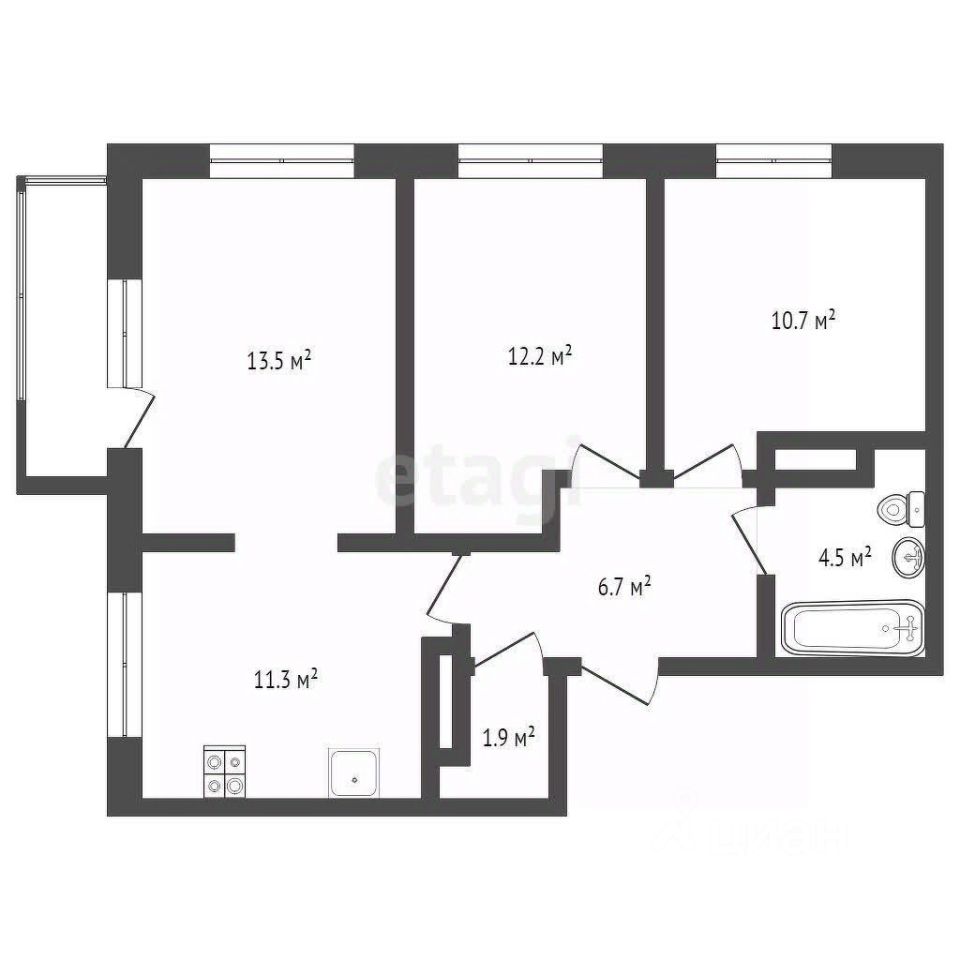 Квартира с универсальной планировкой. Можно считать её современной планировкой 2+ или классической 3-комнатной квартирой - как вашей душе угодно.