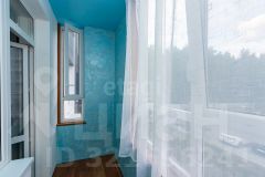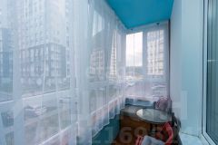 Из гостиной есть выход на лоджию. Лоджия остеклена, на ней выполнен ремонт под лаунж-зону.