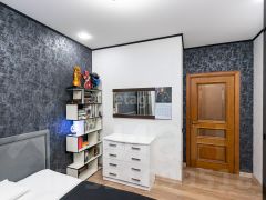 - Дизайн квартиры: полы в прихожей, на кухне, в ванной/санузел, - керамическая плитка, в комнатах - ламинат, стены - обои, натяжные потолки с точечными светильниками, межкомнатные двери из массива дерева.